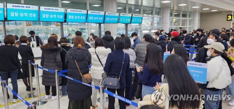 대한항공 관계자는 "폭설과 강풍 등 예보가 워낙 좋지 않은 상황이어서 오후 3시께 전편 결항을 결정하게 됐다"면서 "25일 기상 상황을 보고 24일 결항편 승객을 대상으로 한 특별기 편성과 좌석 확대 등 대처 방안을 검토하고 있다"고 말했다.