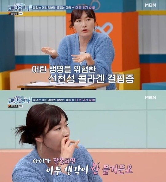 사연을 접한 김미려는 "우리 둘째 아들이 태어나자마자 중환자실에 갔다"며 "병명은 선천성 콜라겐 결핍증이다, 우리 아들은 그나마 입천장에 구멍이라도 있었지만 숨을 잘 못쉬었다"고 밝혔다.