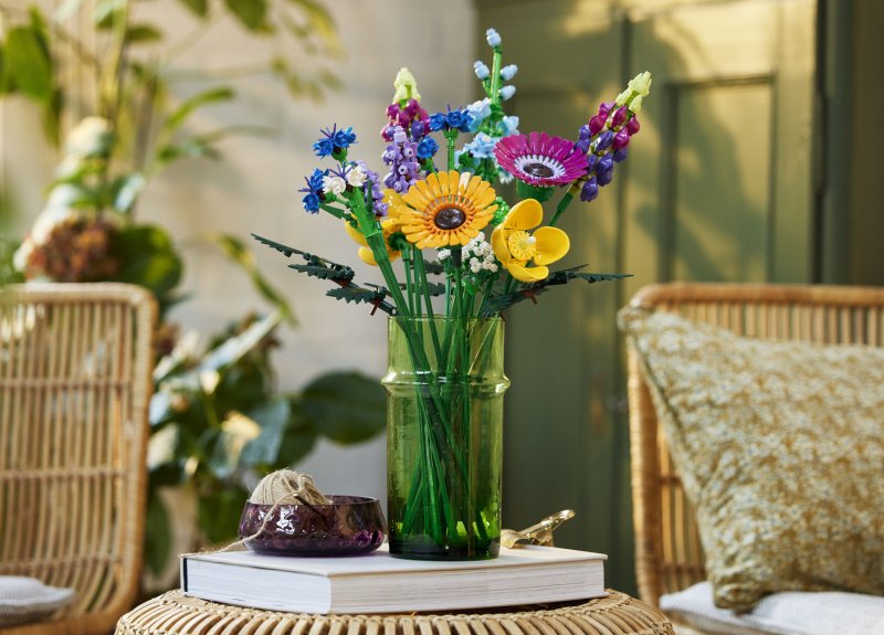 레고 야생화 꽃다발은 야생화 다발을 재현했다. 수레국화, 라벤더, 웨일스 양귀비, 루모라고사리 등 개성 넘치는 식물 8종의 줄기와 잎사귀, 꽃잎을 직접 조립할 수 있다.