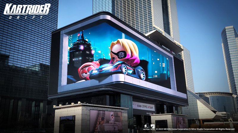 또한 강남대로 일대에 위치한 대형 전광판에는 실제 강남역을 모티브로 한 ‘카트라이더: 드리프트’의 오리지널 트랙 ‘월드 강남 스트리트’의 인게임 그래픽 광고 영상을 상영하면서 번화가를 오가는 이들의 눈길을 끌었다.