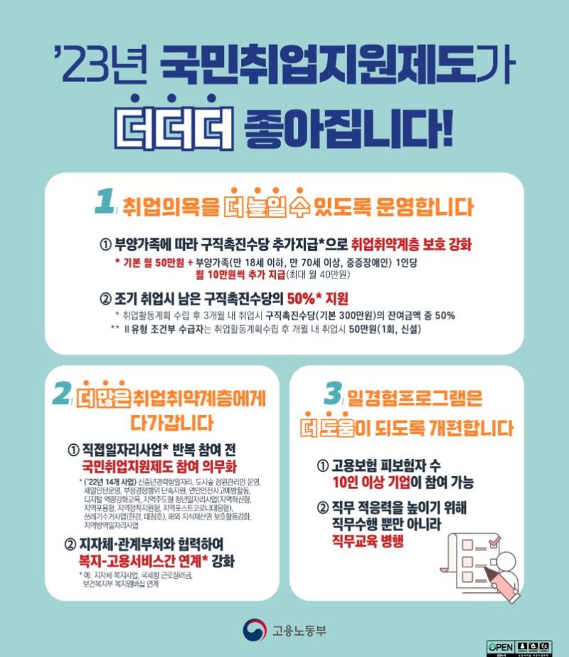 고용부 '2023년 국민취업지원제도 개편사항'