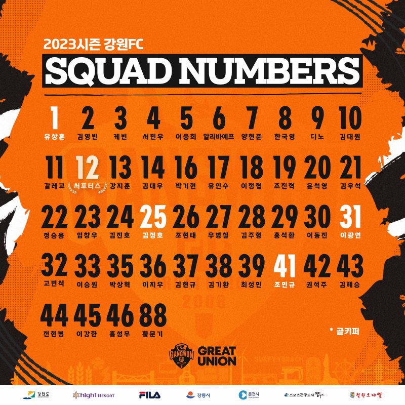 강원FC 2023 시즌 선수단 43명 등번호 발표