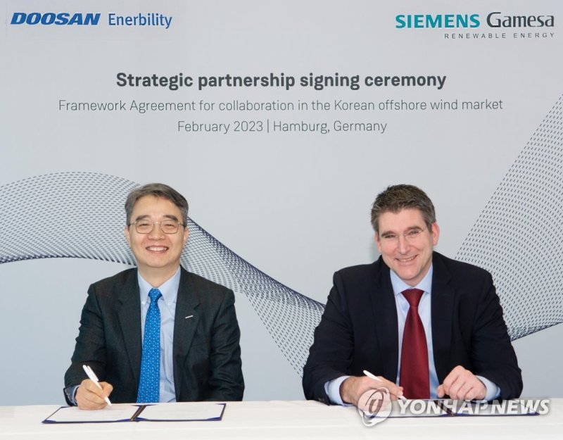 (서울=연합뉴스) 임기창 기자 = 두산에너빌리티[034020]가 글로벌 해상풍력 1위 업체인 지멘스가메사(SGRE)와 손잡고 해상풍력 사업 경쟁력 강화에 나선다.