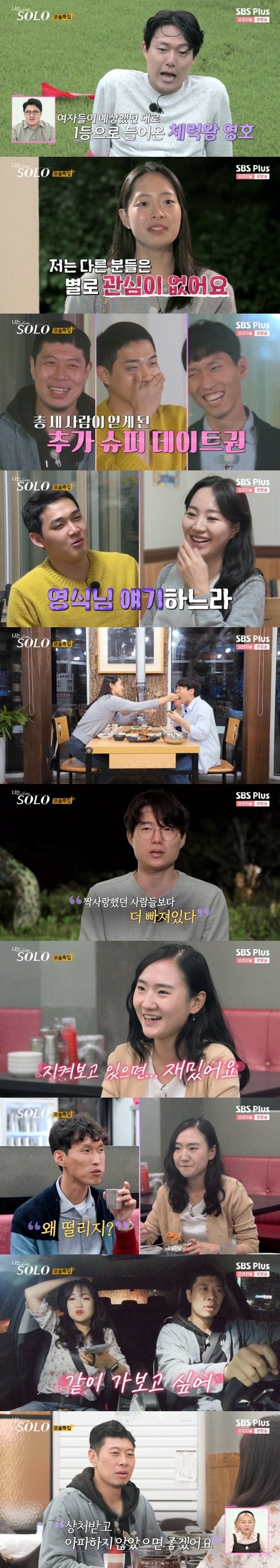 달리기 대결에서 영호, 현숙이 각각 우승을 차지하며 슈퍼 데이트권을 획득했다. 이어 최고령 모태솔로 영철, 이성에게 가장 먼저 마음을 표현한 영식, 솔로나라의 모범시민 상철이 추가로 슈퍼 데이트권을 획득했다.
