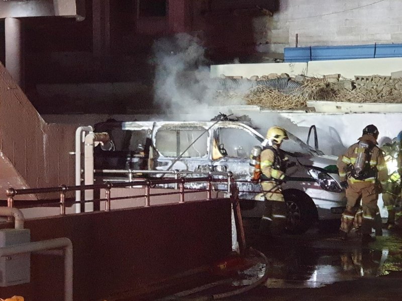 (인천=연합뉴스) 홍현기 기자 = 9일 오후 7시 17분께 인천시 연수구 청학동 한 요양원 건물 인근에 주차된 사설 구급차에서 불이 났다.
