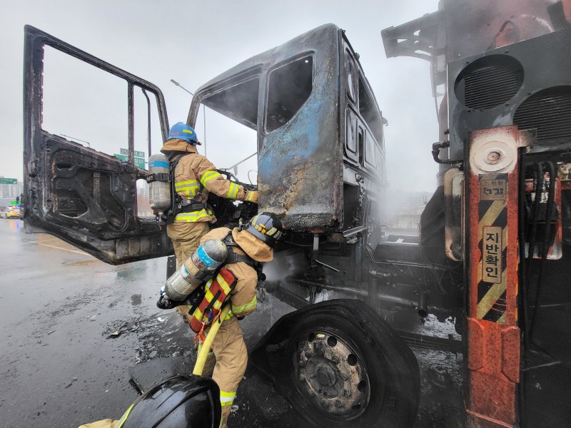 트럭 운전자 A씨는 "갑자기 엔진이 부들거리고 속도가 나지 않아 트럭을 살펴보니 차량 오일이 흐른 곳에 불길이 올라왔다"고 진술했다.