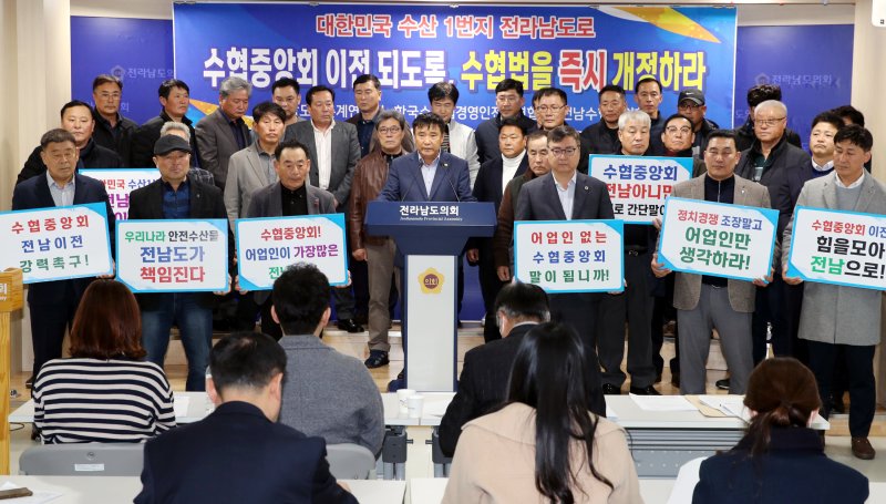 전남어촌계협의회와 한국수산업경영인 전남도연합회, 전남수협협의회는 이날 오후 전남도의회 브리핑룸에서 기자회견을 갖고 "지역 균형발전과 경쟁력 강화를 위해 수협중앙회를 수산 거점 지역인 전남으로 이전해야 한다"고 주장했다.