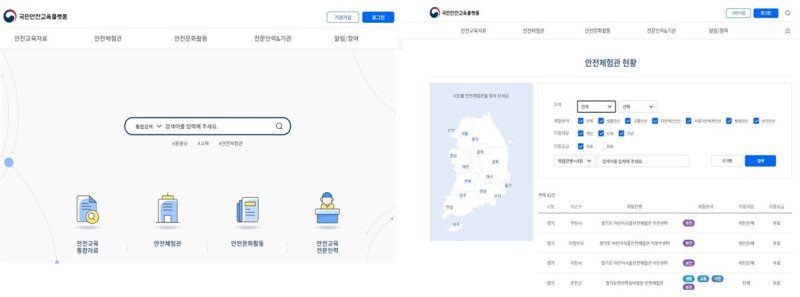안전체험관에선 분야, 대상, 이용요금 등 상세정보 필터를 추가해 검색 기능을 강화했다. 체험 신청이 수월하도록 전국의 안전체험관 위치와 상세 프로그램 정보 등은 찾기 쉽게 배치했다.