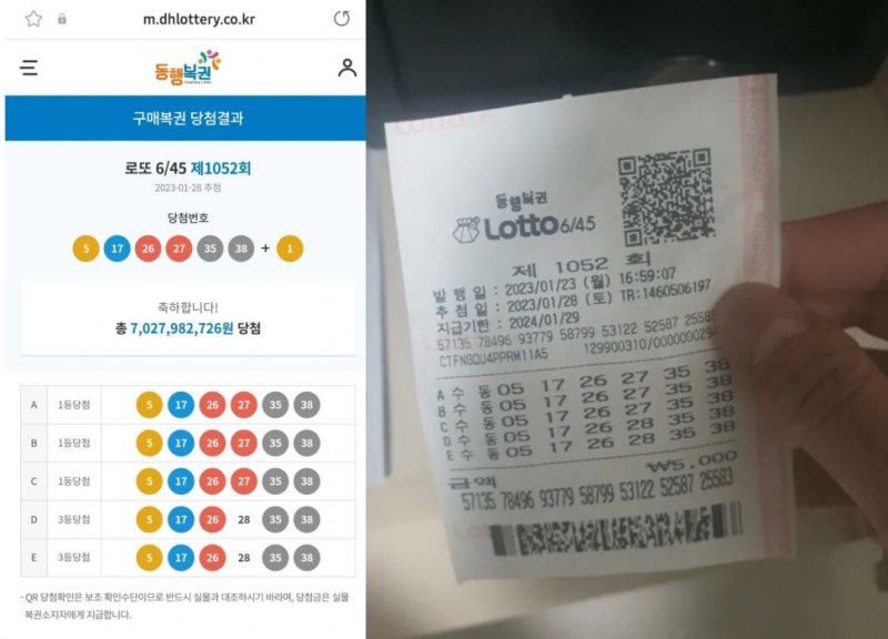 (서울=뉴스1) 소봄이 기자 = 제1052회 로또복권에서 수동 3게임 모두 1등에 당첨된 시민이 뒤늦은 당첨 후기를 전했다.
