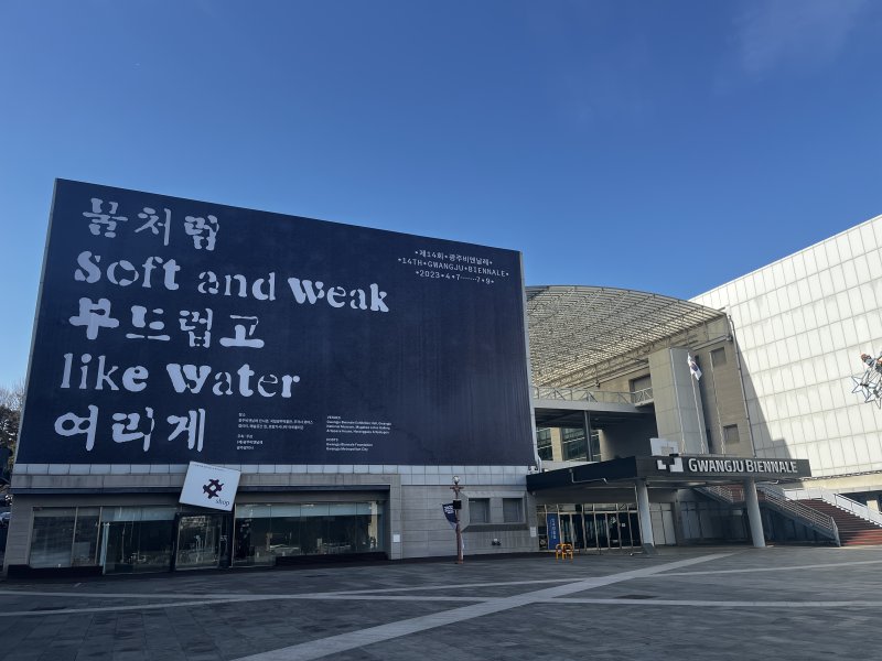 김지연 전시부장은 "광주비엔날레의 주제인 '물처럼 부드럽고 여리게'를 공유하고 각 국가별로 기획 주제들을 제안받았다"며 "공통적으로 그동안 인류가 이뤄온 문제점에 대해 반성하고 예술을 통해 성찰, 해결책을 고민하는 주제가 많았다"고 말했다.