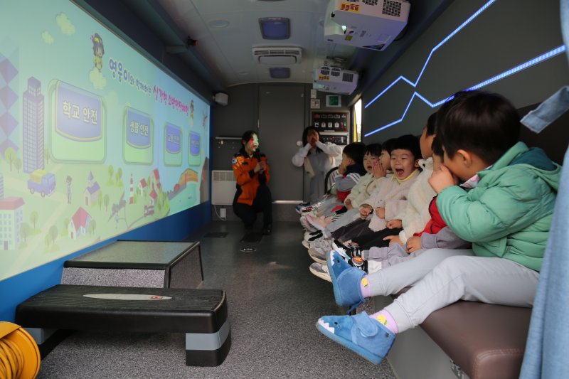 체험은 차량 내부에 설치한 스크린를 활용해 시청각 영상교육(화재, 지진, 교통·선박안전)을 비롯해 화재 대피(피난) 체험, 소화기 사용법 등을 체험할 수 있다.
