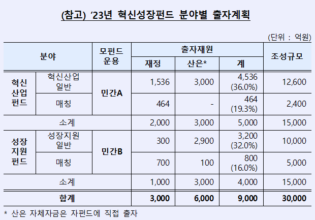 산업은행은 재정 3000억원 및 자체자금 6000억원을 마중물로 민간자금 2조1000억원을 더해 혁신성장펀드 3조원을 조성한다.