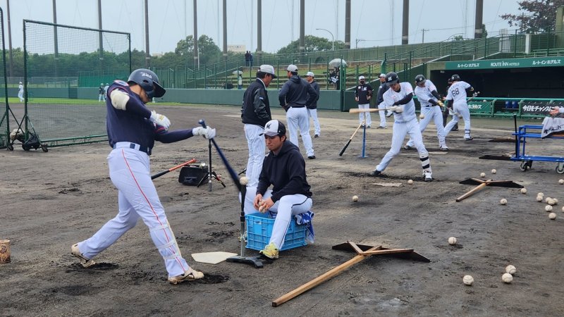 고승민·윤동희·김민석, 지바롯데 투수들 상대로 라이브 배팅