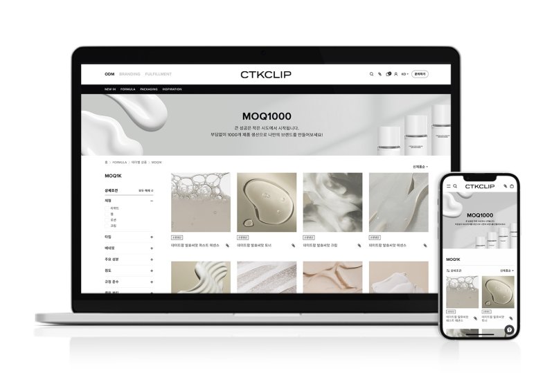 MOQ 1000은 완제품 1000개와 샘플 1만개 생산 의뢰가 가능한 서비스다. 화장품 기획과 생산 과정을 온라인에서 쉽고 빠르게 진행할 수 있다는 것이 특징이다.