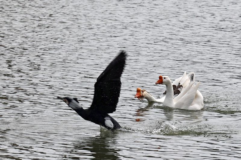 수면을 박차고 함차게 하늘로 날아오를 준비를 합니다.