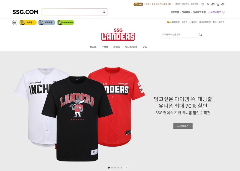 (서울=연합뉴스) 이신영 기자 = SSG닷컴(쓱닷컴)은 야구 시즌 개막을 앞두고 SSG랜더스 공식 브랜드관을 열었다고 7일 밝혔다.