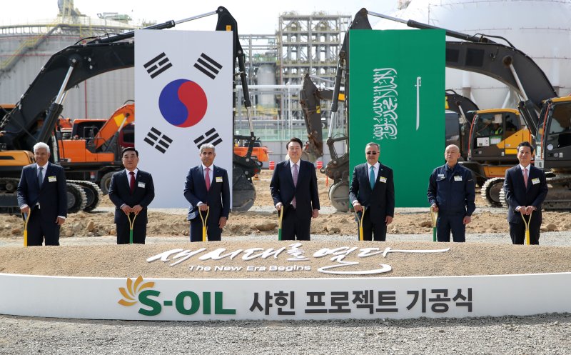 9일 관련업계에 따르면 에쓰오일은 윤석열 대통령이 참석한 가운데 이날 울산시 울주군 울산공장에서 샤힌 프로젝트 기공식을 개최했다. 이날 기공식에는 이창양 산업통상자원부 장관, 김두겸 울산시장, 사우디 아람코 아민 나세르 최고경영자(CEO)를 비롯해 정부와 지자체, 건설업체 관계자 등 300여명이 참석했다.