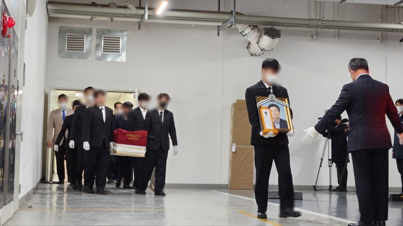 운구차가 대기 중인 장례식장 지하주차장에 고인이 된 전씨의 위패와 영정사진을 든 유가족이 먼저 모습을 보였고, 뒤이어 전씨가 잠든 관이 운구차에 실렸다. 유가족들은 어깨를 들먹이며 흐느꼈다.