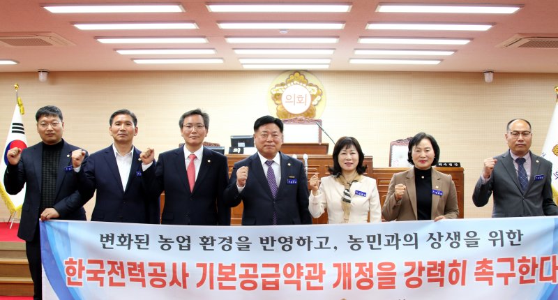 군의회는 "한전이 전기요금 인상, 면세유 폭등으로 고통스러워 하는 농민들에게 전기 사용 계약 위반을 이유로 위약금까지 청구하고 있다"며 "농민들에게 이중고를 안기고 있다"고 주장했다.
