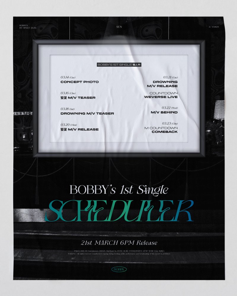 13일 바비의 소속사는 아이콘 공식 사회관계망서비스(SNS) 계정들을 통해 바비의 솔로 싱글 'S.i.R'의 스케줄러를 공개했다.
