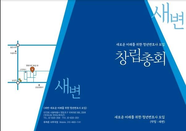 (서울=연합뉴스) 정래원 기자 = 20∼30대 연령의 변호사가 모인 '새로운 미래를 위한 청년변호사 모임(이하 새변)'이 21일 창립총회를 열고 출범한다고 14일 밝혔다.