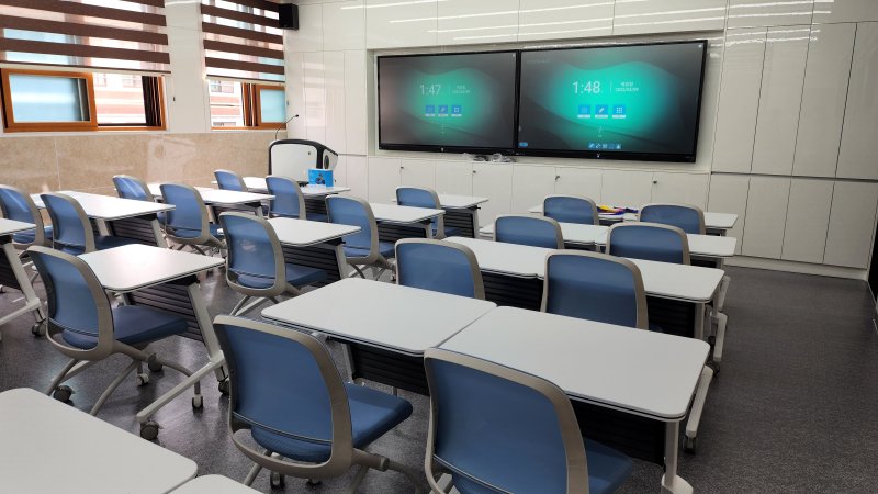 또 AI팩토리실 전면에는 전자칠판 2대가 설치돼 학생들은 노트북을 이용해 교사와 실시간 소통을 하며 코딩 수업을 할 수 있다.