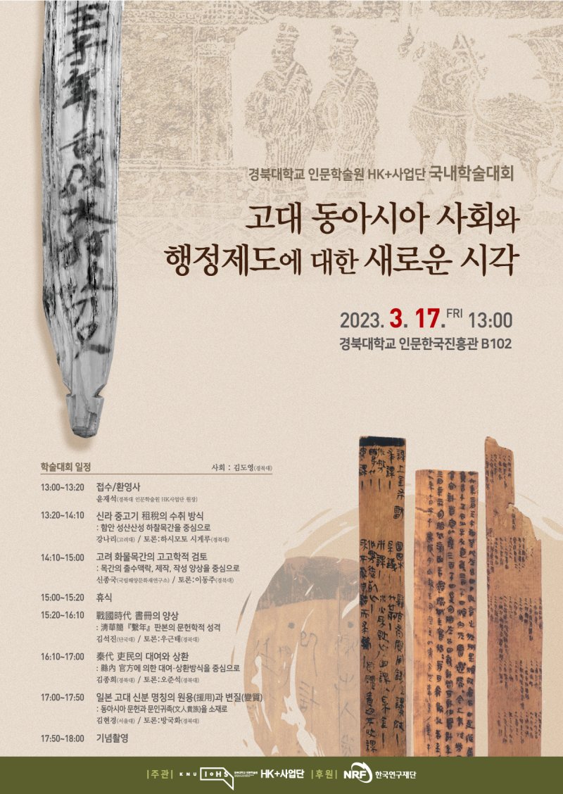 15일 경북대에 따르면 이 학술대회는 종이가 보편화되기 이전 동아시아 지역의 기록 자료인 목간(木簡)을 통해 한국과 중국, 일본 고대국가의 구조와 사회문화에 대한 새로운 연구방향을 모색하는 장이다.