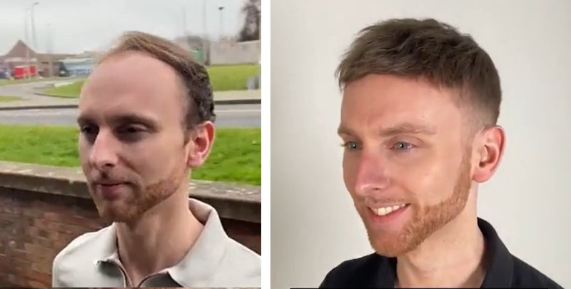 영국 데일리미러는 14일(현지시간) 악성 탈모를 앓고 있는 애슐리 타우니가 받게 된 '회춘 이발'에 대해 보도했다. 평상시 적은 머리숱으로 인해 우울증을 앓고 있던 애슐리는 지푸라기라도 잡는 심정으로 틱톡 등의 소셜미디어를 통해 적극적인 홍보 활동을 벌이고 있는 '노보 카벨로 미용실'을 방문했다.