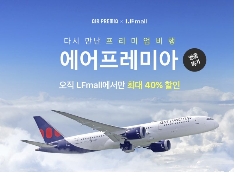[서울=뉴시스]이지영 기자 = LF몰이 중장거리 전문 하이브리드(HSC) 항공사 ‘에어프레미아’의 항공권을 최대 40% 할인하는 단독 특가 행사를 실시한다고 21일 밝혔다.