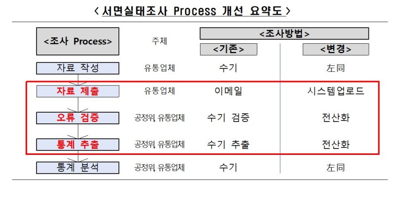 하지만 자료 제출과 오류 검증을 수기로 진행해야 한다는 점에서 시간과 인력이 과중하게 투입돼 업무적으로 효율성이 떨어진다는 지적이 제기됐다. 아울러 조사 항목에도 조사 초기 명목수수료 만을 조사했지만 현재 명목수수료와 판매장려금, 반품, 추가 비용 등 조사 항목이 대폭 확대되면서 업무 부담이 가중된다는 비판도 나왔다.
