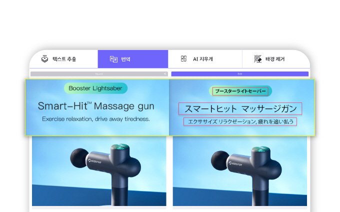 이미짓은 이미지의 일부 영역만 선택해 텍스트 변환, 번역, 제거 등을 할 수 있다. 머리카락 한 올까지 적용되는 '배경제거' 기능도 갖췄다. 모든 편집 기능들을 API(응용프로그램 인터페이스) 형태로 제공해 오픈마켓 플랫폼이나 상품 등록관리 솔루션에도 쉽게 연동할 수 있다. 클릭 한번으로 이미지 내 외국어를 삭제하거나 서식에 맞춰 번역까지 가능하다.