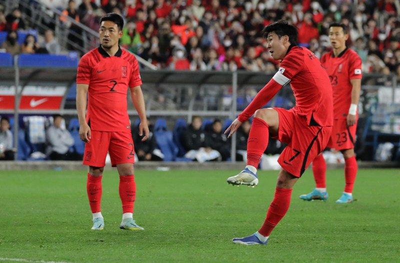 전방에 조규성(전북)을 세웠고 2선에 정우영(프라이부르크), 손흥민(토트넘), 이재성(마인츠)이 자리했다. 손흥민이 조규성 뒤에서 비교적 자유롭게 뛰었다.
