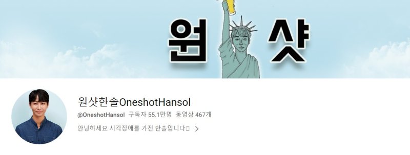 남들이 뭐라든 신경 쓰지 않고 원하는 삶을 살아가겠다는 것처럼 들린다. 유튜버 '원샷한솔' 채널의 운영자 김한솔, 그는 진짜 볼 수 없는 시각장애인이다. 그가 처음부터 세상을 볼 수 없었던 것은 아니다.