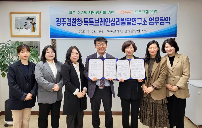 [광주=뉴시스] 변재훈 기자 = 광주경찰청은 28일 범죄에 노출된 청소년들을 위해 전문 상담기관인 '톡톡브레인 심리발달연구소'와 업무협약을 맺었다고 밝혔다.