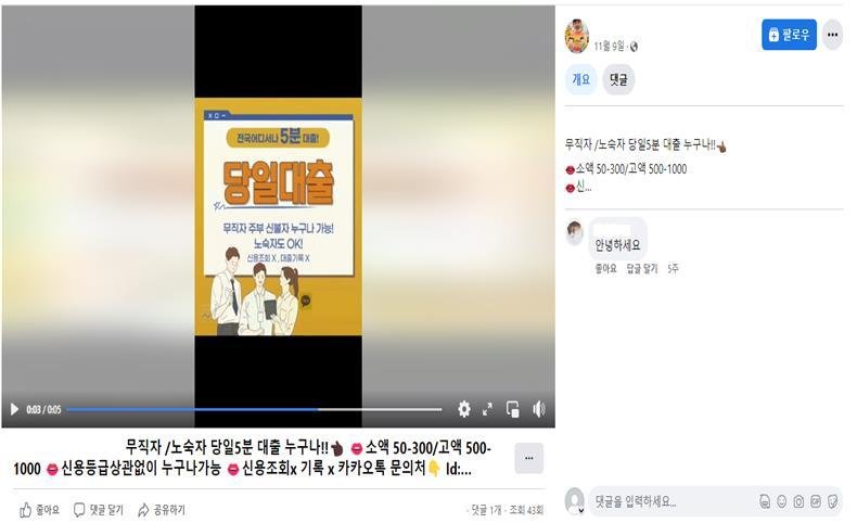 금감원은 "민생침해 금융범죄 척결을 위한 범정부 태스크포스(TF)의 일원으로서 정부 및 유관기관과 협업해 불법 고금리, 추심 등 불법사금융 근절을 위해 노력하고 있다"라며 "온·오프라인을 통한 대부업자 광고에 대해 지속적으로 모니터링해서 필요한 조치를 하겠다"고 강조했다.