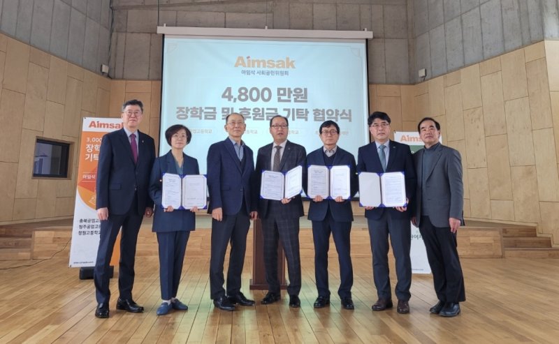 ㈜아임삭은 충북도 인재육성 장학금으로 청주공고, 충북공고, 청원고 등 3개교에 1000만원씩 총 3000만원의 장학금을 전달해 지역인재의 미래성장을 응원했다.