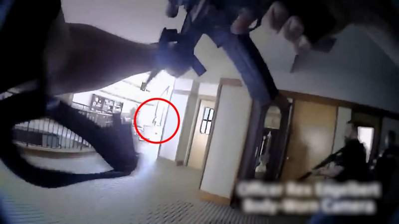 공개된 경찰의 바디캠 영상을 보면 경찰들이 현장에 도착했을 때 학교건물 입구 바깥에 서있던 한 여성이 총격이 벌어진 건물을 가리켰고 공포에 질려 나무에 기대어 있던 교직원이 건물 열쇠를 건네줬다.