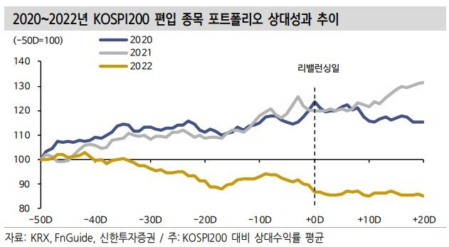 이 연구원은 "신규 편입 종목은 지수 편입과 동시에 공매도 리스크에 노출된다"면서 "반대로 제외 종목은 숏커버 효과를 기대할 수 있어 리밸런싱일 부근에서는 숏커버를 통해 시장을 아웃퍼폼하는 기회가 나타날 수 있다"고 밝혔다.