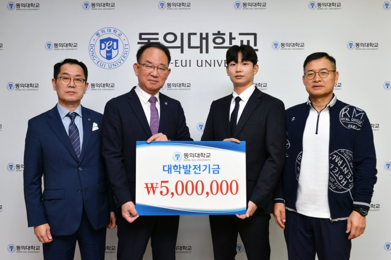(부산=뉴스1) 조아서 기자 = 동의대학교는 지난 30일 학교 배드민턴부 출신의 강경문 선수(체육학과 19학번)가 모교를 방문해 대학발전기금 500만원을 기탁했다고 31일 밝혔다.