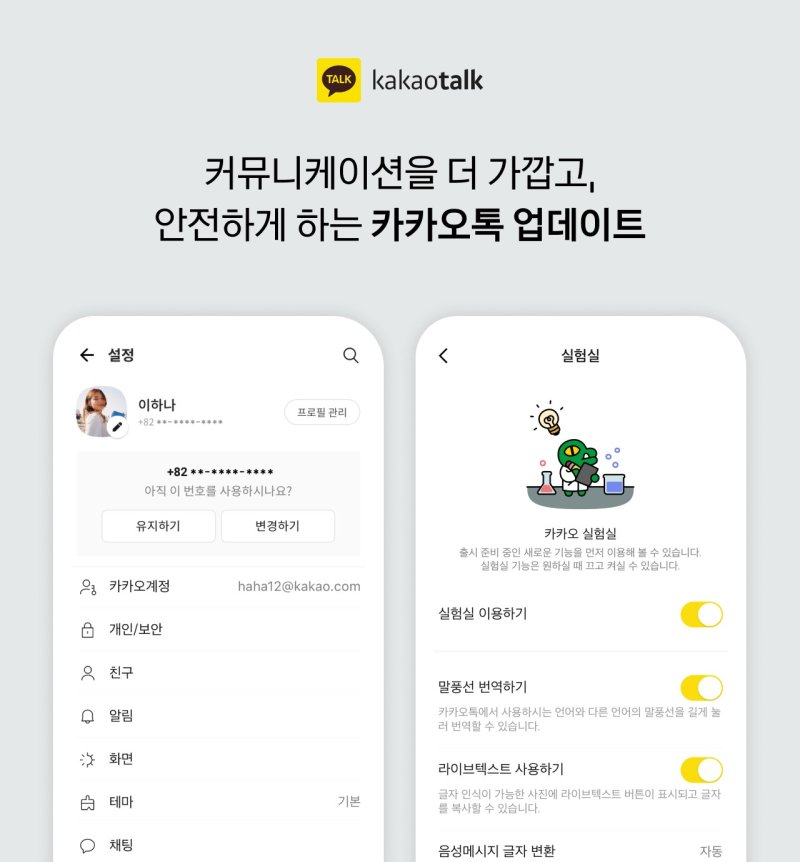 카톡 업데이트 통해 실험실에 있었던 기능 정식으로 반영
