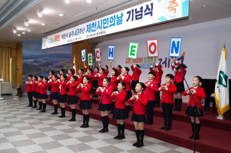 코로나19 여파로 4년 만에 열린 이날 행사는 제천청소년오케스트라의 공연을 시작으로, 자매도시 축하영상과 세명대 학생들의 시민헌장 낭독에 이어 제 35회 시민대상 시상 등이 진행됐다.