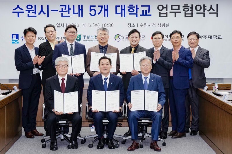 수원시는 5일 오전 시청 상황실에서 경기대·동남보건대·성균관대·수원여대·아주대 등 관내 대학 5곳과 '상생 발전 업무협약'을 맺었다.