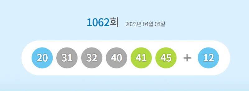 [서울=뉴시스] 위용성 기자 = 8일 제1062회 동행복권 로또 추첨 결과 '20, 31, 32, 40, 41, 45'이 1등 당첨 번호로 결정됐다. 2등 보너스 번호는 '12'이다.