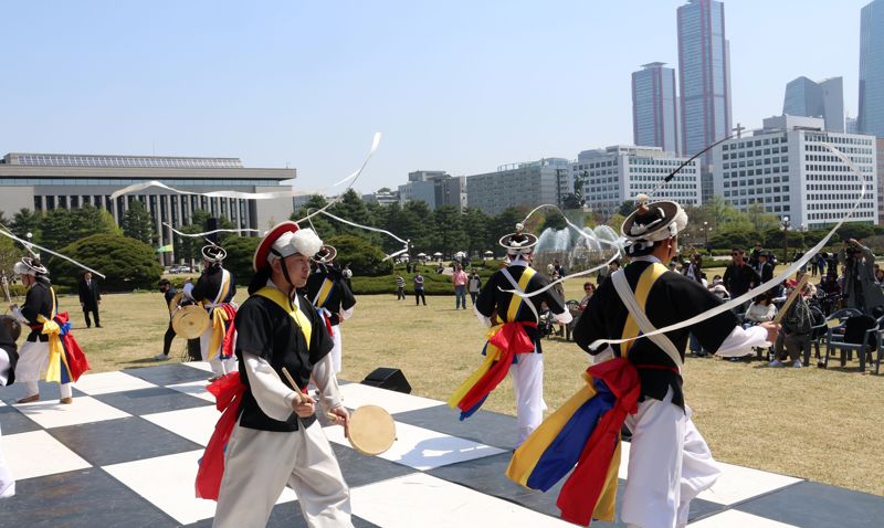 국회는 '국회의 봄, 희망을 피우다'라는 국회개방행사를 코로나19로 중단된 지 4년만에 개최했다. 9일 시민들이 국회 잔디광장에서 펼쳐지는 공연을 관람하고 있다. 사진=김범석 기자