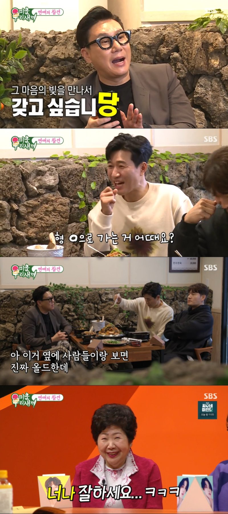 김종국은 답이 안 올 거라고 했다. 이상민은 긴장해서 배가 아프다고 했다. 김종국은 이상민에게 "연애는 노력이다. '나는 원래 이런 사람이다'라는 것을 없애야 한다"고 조언했다. 그러자 김종민은 "신뢰가 안 간다"고 했고, 이를 영상으로 보던 김종국의 어머니는 "너나 잘하세요"라면서 웃었다. 이상민은 여자친구가 운동하던 시간에 운동하지 말고 만나자고 하면 어떻게 할 거냐고 물었다. 김종국은 그전에 운동할 거라고 했다. 김종민이 "새벽까지 같이 있고 싶다고 하면 어떻게 할 거냐"고 하자 김종국은 "새벽까지 있고 운동하러 가야지"라고 했다.