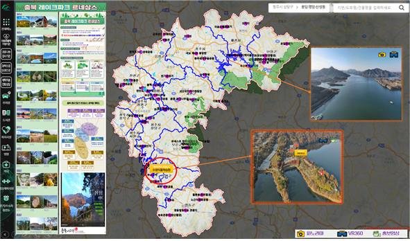 충청북도의 '충북 레이크파크 르네상스 구현을 위한 충북형 공간정보 구축'은 호수·저수지 주변 관광지를 고품질 가상현실(VR360, 동영상)과 3차원 공간정보로 구축해 체험형 모바일 서비스와 관광 콘텐츠 개발에 활용하는 사업이다.