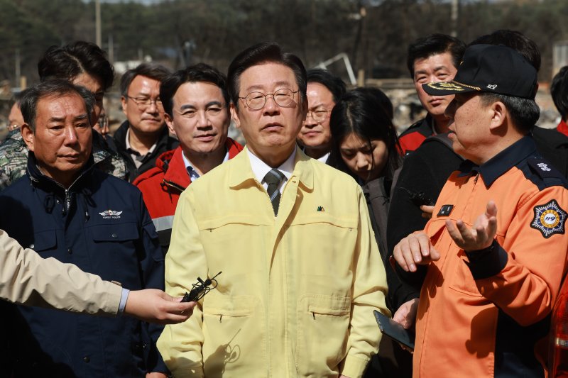 이 대표는 이날 오후 강릉시에서 산불피해 지역주민을 방문하고 피해 현장을 살폈다. 이 자리엔 민주당 박성준 대변인, 천준호 비서실장, 소방관 출신 오영환 의원, 강원에 지역구를 둔 허영 의원 등이 함께 했다.