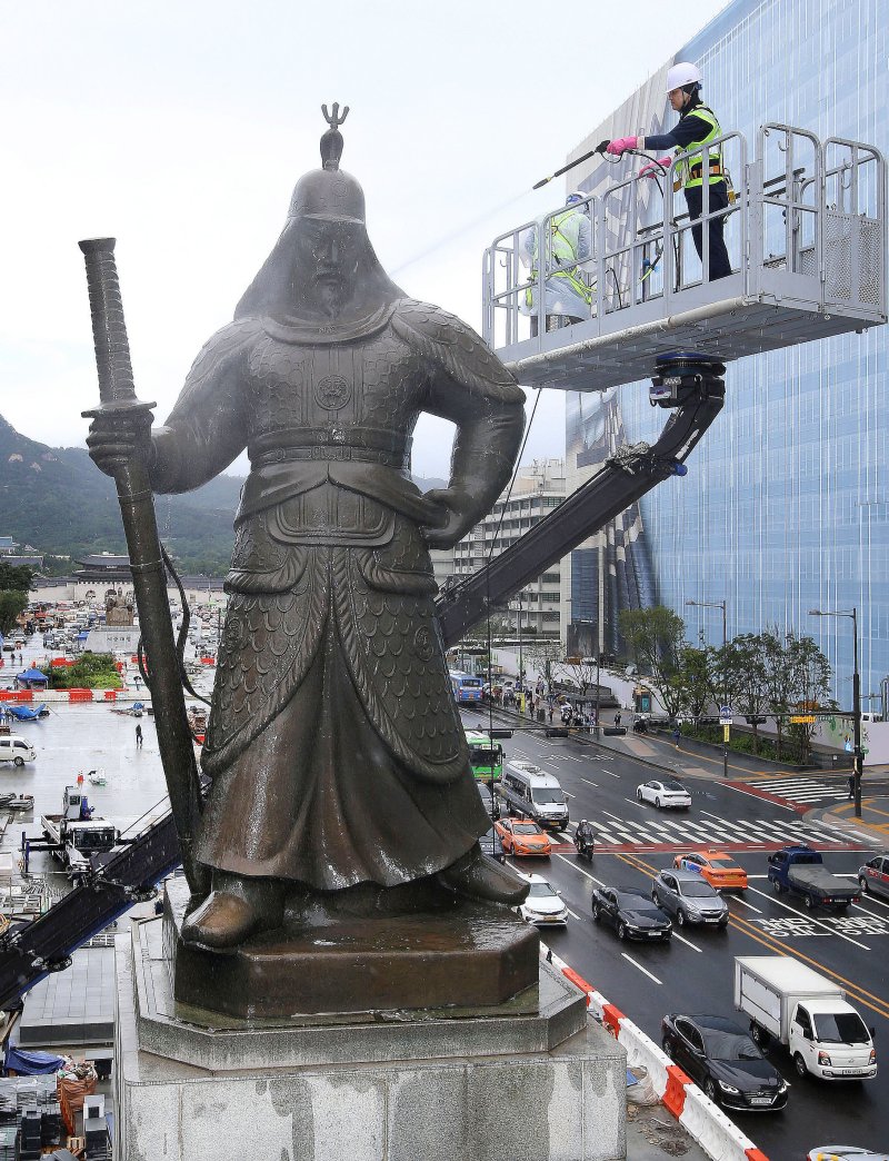 이상면 서울시 광화문광장사업과장은 "세척이 이뤄지면 17일부터 말끔하게 새 단장한 세종대왕과 이순신장군 동상을 광화문광장에서 만나볼 수 있을 것"이라고 밝혔다.