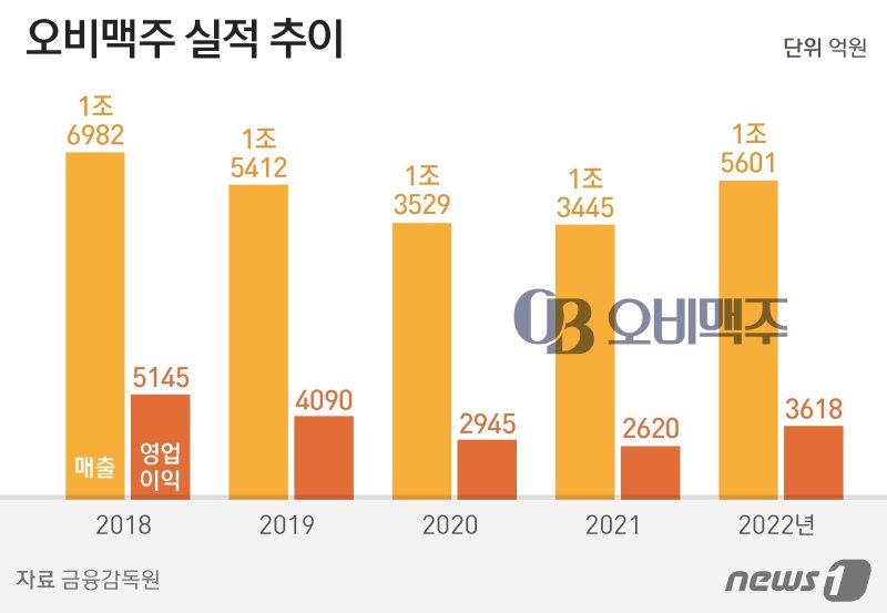 오비맥주 관계자는 "코로나 시기에 영업 제한과 거리두기 등 여러 가지 요인으로 유흥시장이 좋지 않았던 부분이 작년 상반기부터 나아지면서 실적이 개선된 부분이 크다"고 전했다.