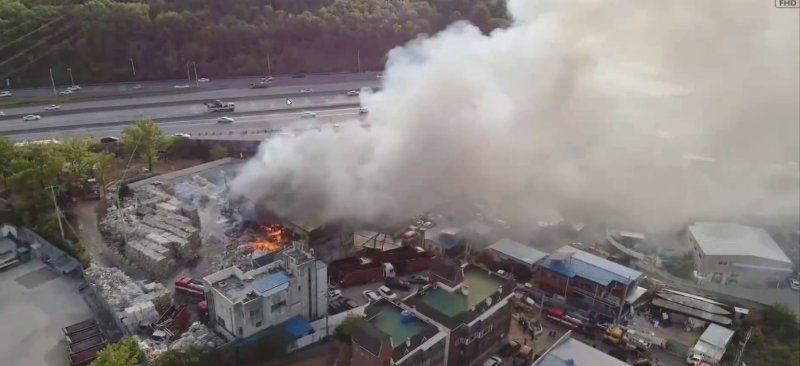소방당국은 대응 1단계를 발령하고 인력 107명, 장비 43대를 투입해 오후 5시45분께 큰 불을 껐다. 현재까지 인명피해는 없다.